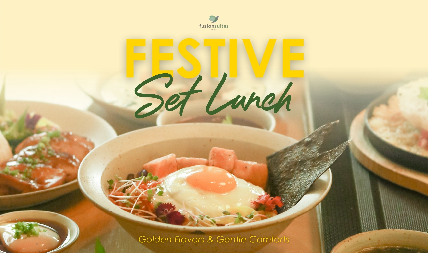 Elevate your lunch break with Festive Set Lunch – Golden Flavors & Gentle Comforts.